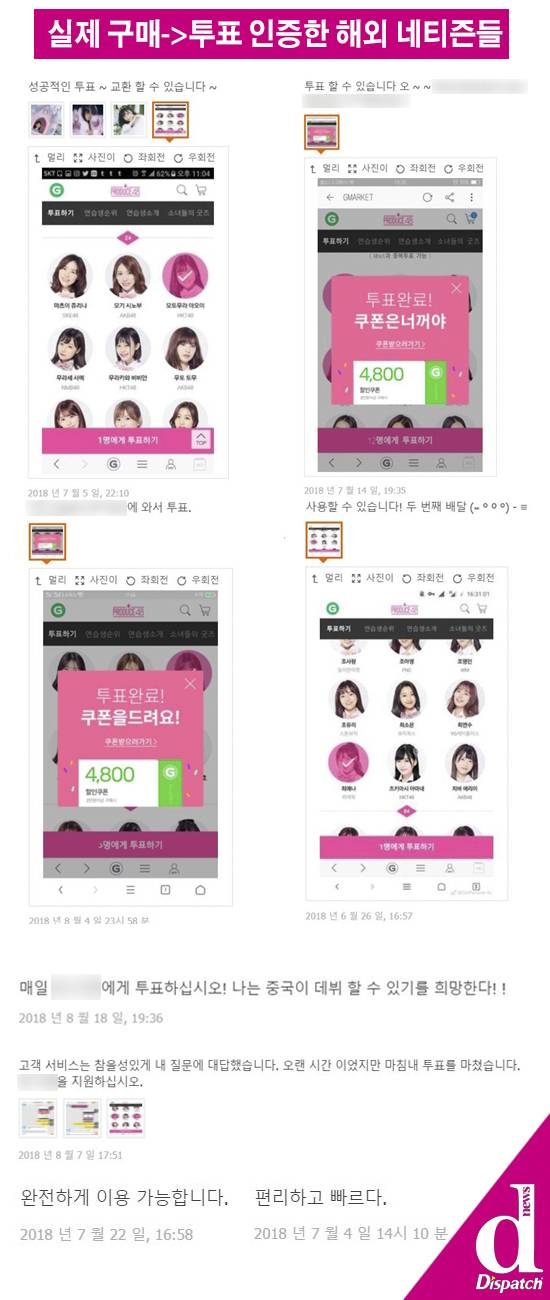 반대로, 투표 성공 인증샷을 올리는 팬들도 많다. 해당 판매 페이지에는 1,600건에 달하는 후기가 달려있다. 성공 인증샷을 올리는 네티즌도 다수였다.