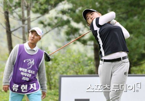 [정선(강원)=스포츠투데이 팽현준 기자] 25일 강원도 정선 하이원 컨트리클럽에서 열린 '하이원리조트 여자오픈 2018' 2라운드, 류현지가 11번홀 티샷을 날리고 있다. 2018.08.25.