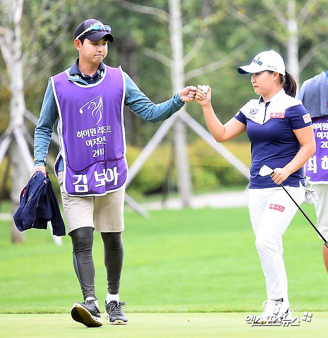 [엑스포츠뉴스 정선, 김한준 기자] 25일 오전 강원도 정선 하이원 컨트리클럽(파72/6,495야드)에서 열린 '하이원리조트 여자오픈 2018'(총상금 8억 원, 우승상금 1억6천만 원) 2라운드, 김보아(23, 넥시스)가 11번홀 버디를 기록한 후 홀아웃을 하고 있다.