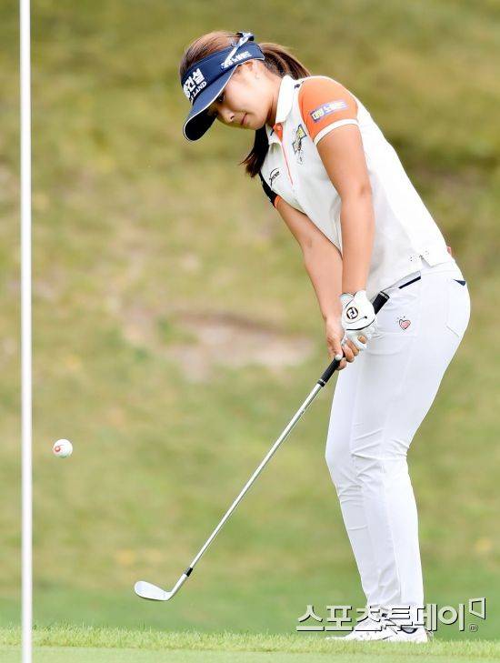 [정선(강원)=스포츠투데이 팽현준 기자] 25일 강원도 정선 하이원 컨트리클럽에서 열린 '하이원리조트 여자오픈 2018' 2라운드, 이정은이 12번홀 어프로치 샷을 날리고 있다. 2018.08.25.