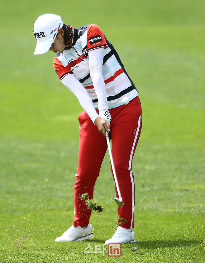 [이데일리 골프in 정선=조원범기자]25일 강원도 정선에 위치한 하이원 컨트리클럽(파72/6,495야드)에서 2018시즌 하반기 세 번째 대회 '하이원리조트 여자오픈 2018'(총상금 8억 원, 우승상금 1억6천만 원) 2라운드가 열린 가운데 안나린(22.문영그룹)이 10번홀에서 세컨샷하고 있다.