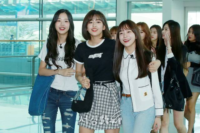 프로듀스48(PRODUCE48) 한국 연습생 장원영, 안유진, 조유리가 일본 나리타로 출국하고 있다.