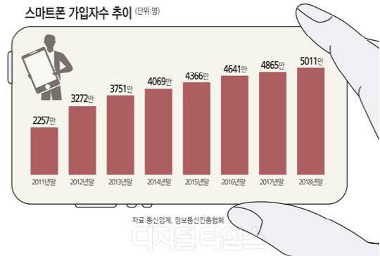 스마트폰 1인1폰 시대.. 가입자 5000만명 넘어섰다