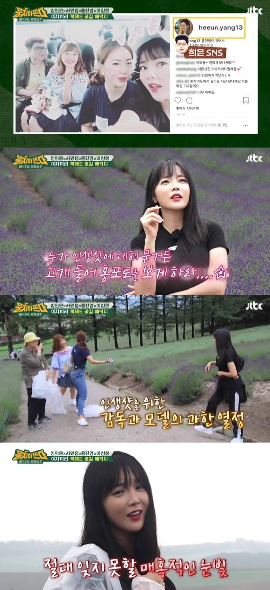 "인생샷은 맡겨만 달라"고 듬직한 모습을 자랑한 홍진영은 양희은과 서민정, 막내 이상화까지 차례대로 사진을 찍어주기 시작했다.