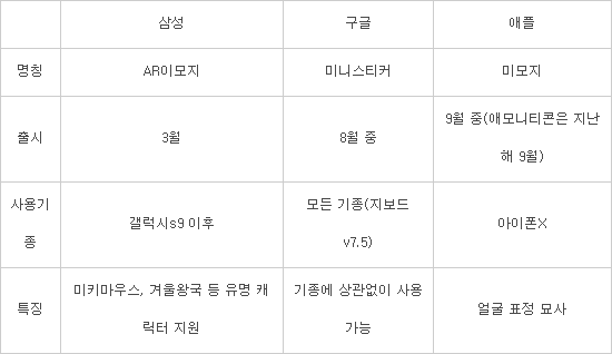 <표>삼성〃구글〃애플 이모티콘 비교