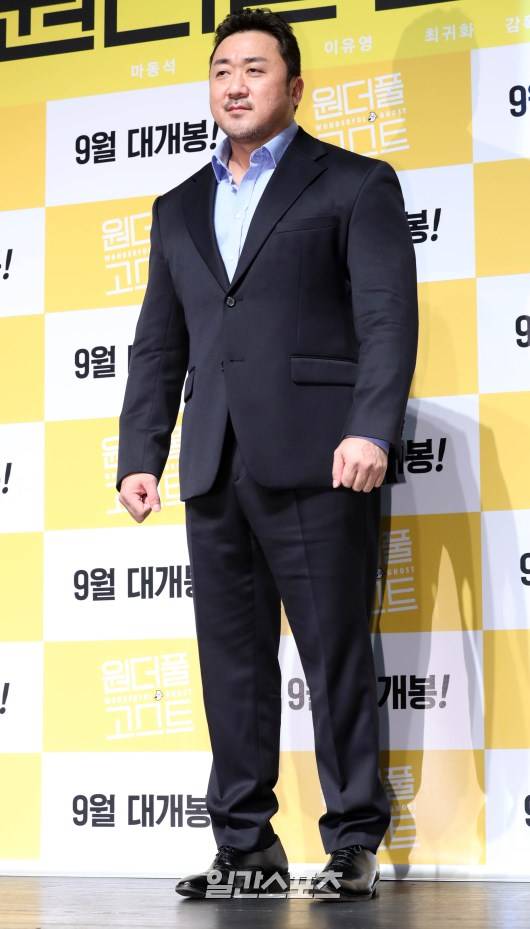 배우 마동석이 29일 오후 서울 압구정CGV에서 열린 영화 '원더풀 고스트' 제작보고회 포토타임에서 포즈를 취하고 있다.