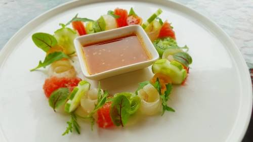 베트남에는 느억맘(nuoc mam), 한국에는 어간장, 태국에는 남플라(nam pla)라고 불리는 생선을 발효시킨 소스가 있다. 생선을 소금에 절이고 발효가 끝나면 생기는 국물을 간장처럼 소스로 만들어 사용한다. 생선은 물론, 돼지고기요리에도 찰떡궁합이다. 태국소스를 이탈리아 요리에 활용하면 의외라 생각할 수 있다. 하지만 생선 카르파치오는 식재료가 맛을 좌우하기 때문에 태국식 소스를 활용하면 단조로운 맛에서 벗어날 수 있다. 아시아의 소스들은 한 가지 소스에서도 짜고, 맵고, 시고, 단맛이 한꺼번에 나는 것이 종종 있다. 발효음식이 최근 서양에서 각광 받는 이유도 맛의 스펙트럼이 넓어 이국적인 맛으로 느껴지기 때문이다. 자칫 단조로울 수 있는 회에 이국적인 아시아의 향과 맛을 곁들이면 새로운 맛의 세계를 경험할 수 있다.