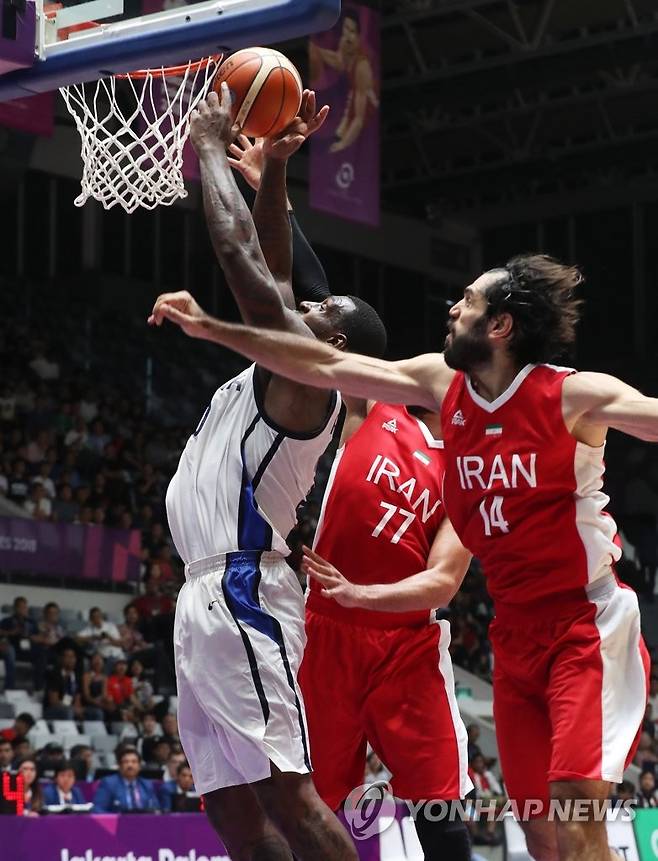 (자카르타=연합뉴스) 홍기원 기자 = 30일 오후(현지시간) 인도네시아 자카르타 겔로라 붕 카르노(GBK) 이스토라 농구장에서 열린 2018 자카르타ㆍ팔렘방 아시안게임 남자 농구 4강 한국과 이란의 경기. 한국 라건아가 슛을 하고 있다. 2018.8.30