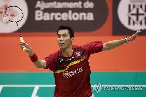 epa06992151 Suppanyu Avihingsanon from Thailand in action against Rasmus Gemke of Denmark during the men's singles final at the Barcelona Spain Masters badminton tournament in Barcelona, Spain, 02 September 2018. EPA/ALEJANDRO GARCIA
