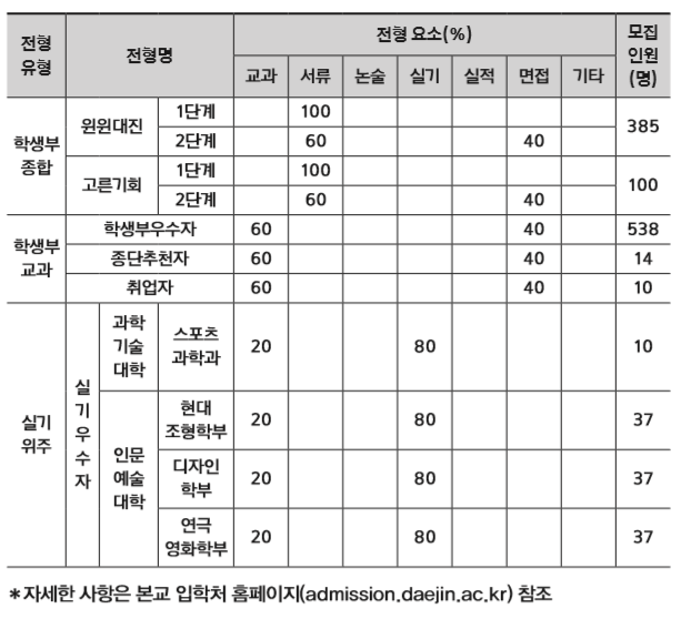접수 방법 대진대 홈페이지(www.daejin.ac.kr) 내 원서 접수