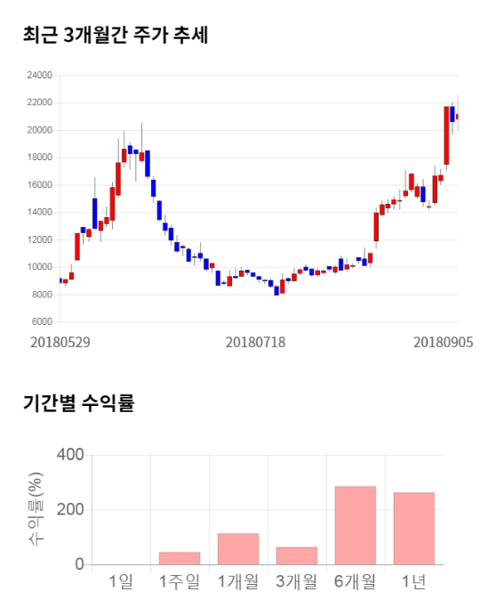 주가 모멘텀은 눈에 띄는 성장세를 기록했다. 최근 6개월 수익률이 무려 286.65%의 상승폭을 기록했다. 최근 1개월 수익률 또한 115.16% 상승하며 굉장히 좋은 모멘텀을 보이고 있다.