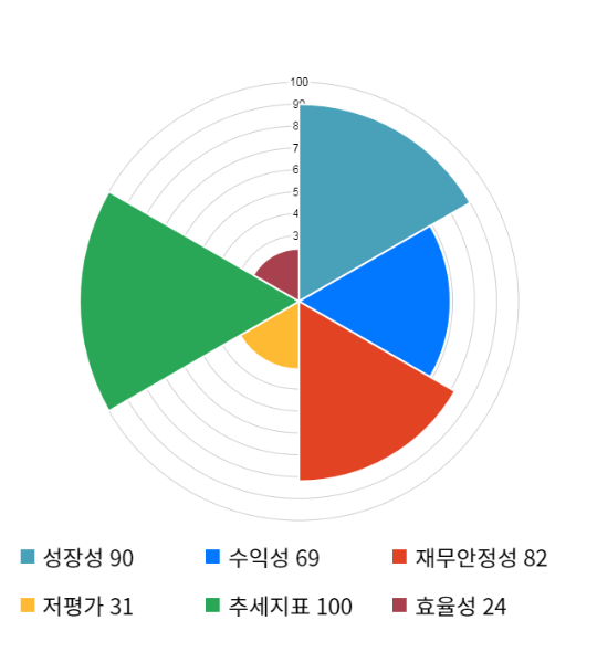 AI 인공지능 종목 분석 시스템을 이용해 성장성, 수익성, 효율성, 안전성, 저평가성, 추세 등 주가 수익률에 영향을 줄 수 있는 6가지 핵심 투자 지표를 점수화하여 종목의 투자 매력도를 계산해보았다.
