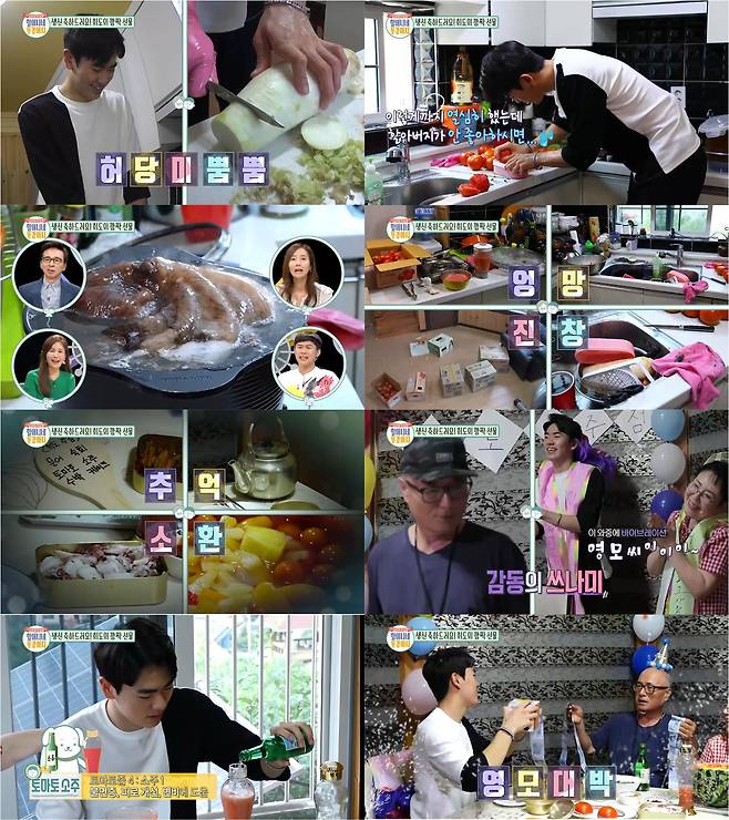 하지만, 50여 년 전 할머니와 할아버지의 첫 만남을 고스란히 재현한 주점 콘셉트의 생일상과 할아버지 맞춤형 토마토 소주 그리고 뽑으면 천 원짜리 지폐가 줄줄이 나오는 특별한 돈 휴지 박스를 선물해 남능미♥정영모 부부를 흐뭇하게 했다.