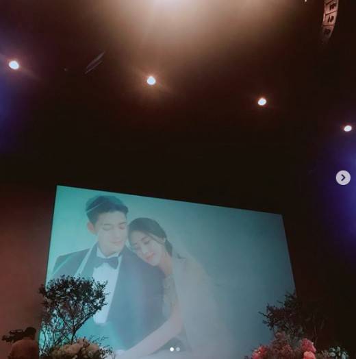 게재된 사진엔 김진우의 결혼식 현장 스크린과 예비신랑 김진우와 함께한 기념 촬영이 담겼다.