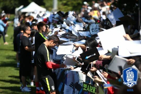 오픈 트레이닝데이를 향한 열기도 뜨거웠다. 선수들과 지근거리에서 만나며 사인과 사진을 받을 수 있는 기회다 보니 팬들의 관심이 집중됐다. 500명 선착순 입장의 원칙이다 보니 행사가 공개된 뒤부터 파주NFC에서는 밤샘 행렬을 하겠다는 이들과 ‘대리 밤샘 알바’를 하겠다는 SNS 글도 어렵지 않게 찾을 수 있었다.