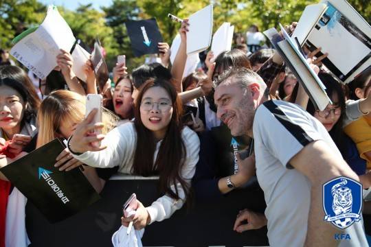 파울루 벤투 감독과 포르투갈 코치들은 문화 충격을 경험한 듯한 표정이었다. 유럽에서 축구는 남성 중심의 팬덤이 구성되는 데 반해 그들이 본 첫 A매치 관중석과 이날 행사는 여성 비중이 매우 높았다. 신기한듯 바라보던 코치들은 인증샷을 찍는 모습을 보였다. 한걸음 떨어져 지켜보던 벤투 감독은 자신을 연호하는 목소리가 높아지자 협회 직원과 통역의 설명을 들은 뒤 팬들의 사인 요구에 응했다. 무뚝뚝한 표정으로 유명한 그지만 그 순간엔 밝은 표정을 보였다.