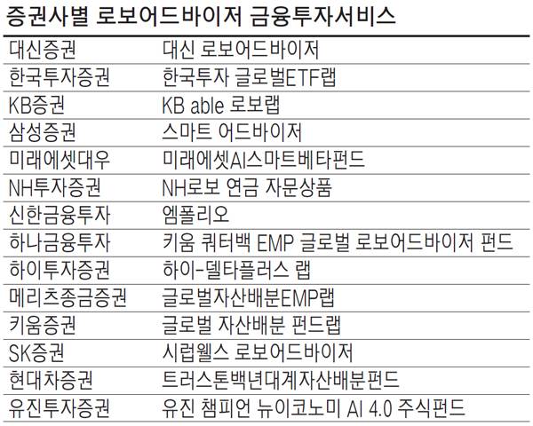 증권사별로는 국내나 국외 등 다양한 투자 유형별 로보어드바이저상품이 나오고 있다.
