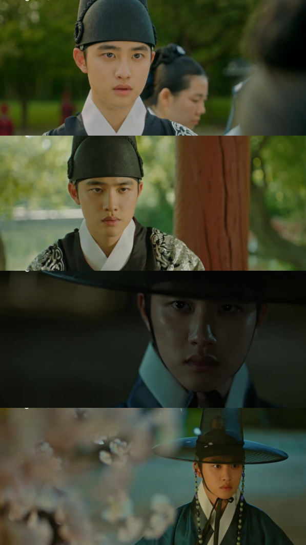 이날 이율(도경수 분)은 어린 시절 아버지(조한철 분)가 반란으로 왕이 되면서 자연스럽게 왕세자가 됐다. 이 과정에서 사랑하던 윤이서(남지현 분)가 쫓겨나고 그의 아버지가 살해당하는 아픔을 겪었다.