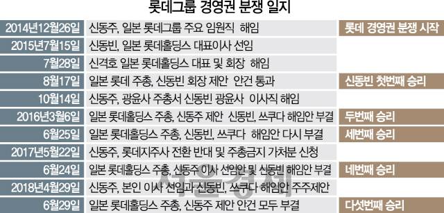 1심에서 실형을 받은 뒤 경영권 분쟁 당사자인 신동주 전 일본롯데홀딩스 부회장은 곧바로 일본롯데홀딩스 주주총회에서 신 회장의 등기이사 해임을 요구했다. 일본은 기업 경영진의 도덕성 문제에 한국보다 더 민감하게 반응하는 만큼 신 전 부회장의 공격은 예상했던 일이었다. 일반적으로 일본에서는 기업인이 검찰의 수사만 받아도 해임 요구가 거세게 일고 재판부에서 범죄 혐의를 인정할 경우 대부분 스스로 자리에서 내려오는 경우가 많다. 일본롯데 경영진은 일단 신 회장의 손을 들어줬지만, 대법원에서까지 실형이 확정될 경우 상황이 어떻게 변할 지는 쉽게 예상하기 힘들다.