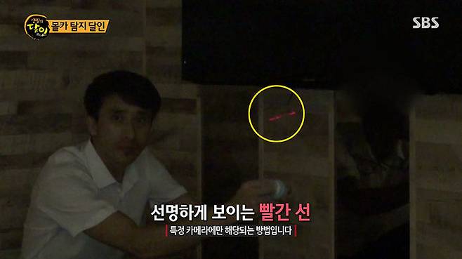손 씨가 불을 끈 상태에서 화장품 파우더 등 분가루를 의심 가는 구역 주변에 날리자, 어둠속에서 선명한 빨간선이 발견됐습니다.