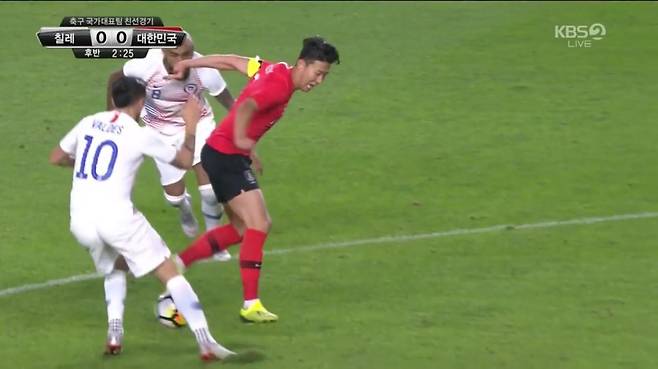 먼저, 아르투로 비달의 태클이 들어오자 손흥민은 공을 가볍게 들어 올리며 피했다. 이어 디에고 발데스가 손흥민에게 다가왔고, 손흥민은 뒷발을 이용해 발데스의 다리 사이로 남태희에게 패스했다. 손흥민은 2초 남짓한 짧은 시간 동안 이 연속 동작으로 탈압박에 성공했다.