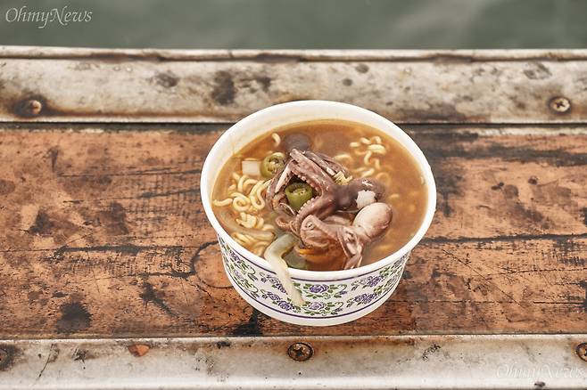 | ▲ 주꾸미 라면을 맛있게 끓이려면 통째로 넣으면 안 된다. 몸통과 다리를 분리한 뒤 몸통을 먼저 넣어 익히고 면이 익을 즈음에 다리를 넣고 한소끔 끓여야 제대로된 맛을 볼 수 있다. |