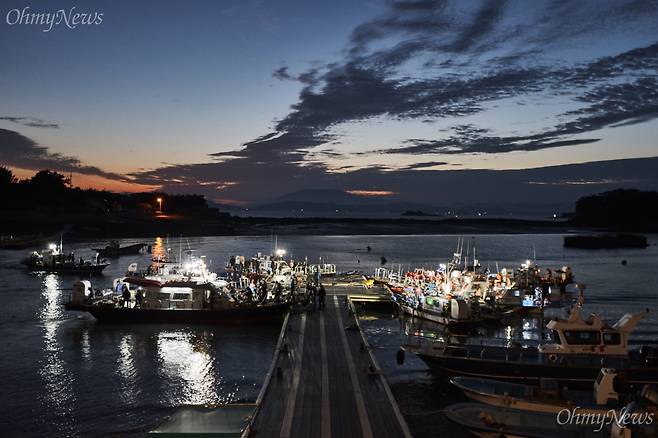 | ▲ 가을이 오면 보령, 서천, 안면도 등 서해 바다에 매일 수백 척의 주꾸미 낚싯배가 뜬다. 사진은 안면도 항의 모습. |