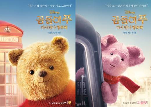 첫번째 주인공이자 느긋하고 긍정적인 곰돌이 푸 명대사는 “내가 가장 좋아하는 날은 바로 오늘이야”와 함께 겁 많고 소심한 캐릭터 피글렛의 명대사는 “네가 오는 날은 언제나 햇살이 가득해”이다. 어릴 적 잊지 못할 추억을 느낄 것 같은 이들의 대사는 벌써부터 감성이 충만해진다.