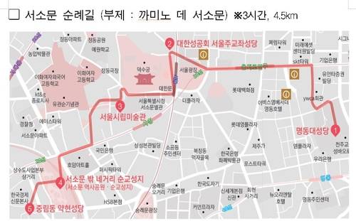 (서울=연합뉴스) 윤고은 기자 = 서울시는 14일 '천주교 서울 순례길' 선포에 맞춰 44.1km 순례길에 포함된 순례지 일부와 인근 관광명소를 연계한 '해설이 있는 서울 순례길' 3개 도보 관광코스를 개발했다고 13일 밝혔다.