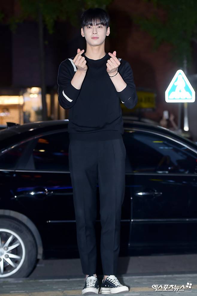 [엑스포츠뉴스 서예진 기자] 15일 오후 서울 여의도의 한 음식점에서 열린 드라마 ‘내 아이디는 강남미인’ 종방연에 참석한 아스트로 차은우가 취재진의 포토타임 요청에 응하고 있다.