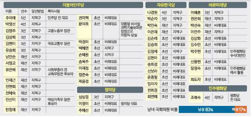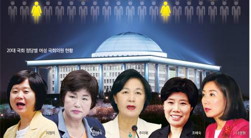 국회 여가위원장인 민주당 전혜숙 의원 역시 “운동장이 너무 기울어져 있어서 특단의 대책을 세우지 않으면 여성 진출을 장려하기 힘들다”며 “남자들의 먹이사슬 속에서 여성은 배제되고 있는 게 현실이다. 우리 국회의 유리천장이 너무 두껍고 높다”고 토로했다. 김형준 명지대 인문교양학부(정치학) 교수는 “일정 기간을 정해놓고 여성 ‘풀’을 늘려야 할 시점”이라며 “추미애 전 대표 시절에도 여성 공천은 획기적이지 않았다. 사실상 직무유기”라고 꼬집었다.