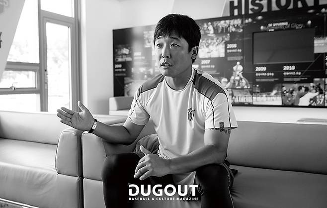 “나는 무턱대고 하는 스타일이다. 많이 하면 잘하는 줄 알았기에 나가서 열정적으로 운동했다. 친구들과 달리 청바지를 입은 적이 없다. 항상 트레이닝복 혹은 유니폼을 입었다. 쉬는 시간에 놀고 즐기면 야구 실력이 줄어드는 줄 알았기 때문에 힘들어도 나가서 뛰었다. 고지식한 운동 패턴을 가지고 있었던 셈이다. 반면 동생은 뭘 해야 하는지 파악하고 효율적으로 행동했다. 아들이 야구한다고 하면 동찬이 같은 교육방침으로 가르칠 것이다.”