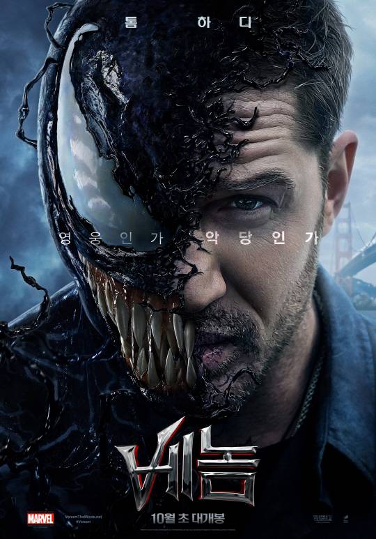 한편, 마블 최초 빌런 솔로 영화인 '베놈'은 정의로운 기자 에디 브록이 외계 생물체 심비오트의 숙주가 된 후 마블 최초의 빌런 히어로 베놈으로 거듭나는 이야기를 그린 액션 블록버스터다. 톰 하디, 미셸 윌리엄스, 리즈 아메드, 제니 슬레이트, 우디 해럴슨, 샘 메디나, 미쉘 리 등이 가세했고 '갱스터 스쿼드' '좀비랜드'의 루벤 플레셔 감독이 메가폰을 잡았다. 오는 10월 3일 국내, 5일 북미 개봉한다.