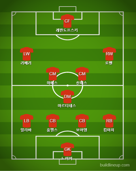 바이에른은 이 경기를 앞두고 코랑탱 톨리소와 티아고 알칸타라가 동시에 부상을 당하면서 중앙 미드필더 포지션에 상당한 전력 누수가 발생했다. 이에 니코 코바치 감독은 하비 마르티네스를 수비형 미드필더로 포진시키면서 헤나투 산체스와 하메스 로드리게스를 중앙 미드필더로 배치하는 4-3-3 포메이션으로 벤피카 원정에 나섰다.