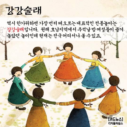 원래 호남지역에서 추석날 밤 여성들이 즐겨 놀았던 놀이인데 현재는 전국 어디서나 볼 수 있죠.