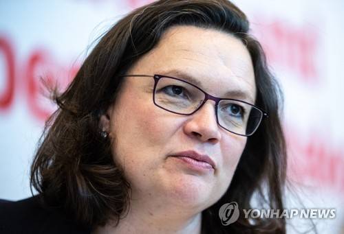 epa07043015 Leader of the Social Democratic Party (SPD) Andrea Nahles during the SPD business and personal councils conference in Berlin, Germany, 24 September 2018. SPD members are to discuss on a new forms of working time arrangements in close cooperation with collective bargaining parties and flank them with suitable legal frameworks. EPA/HAYOUNG JEON