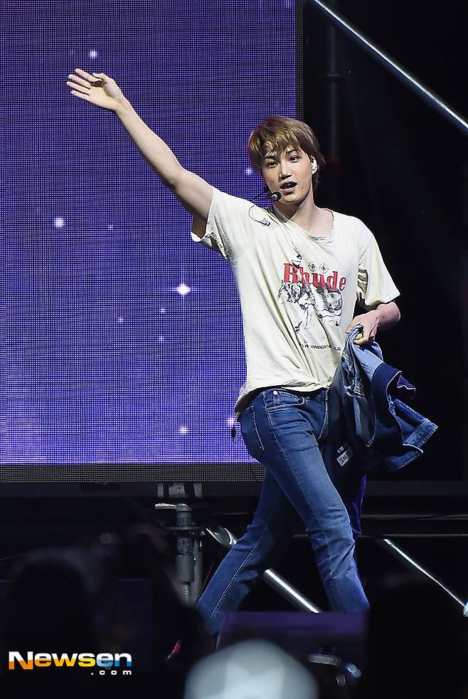 이날 가수 엑소 카이가 무대를 펼친후 인사를 하고 있다.