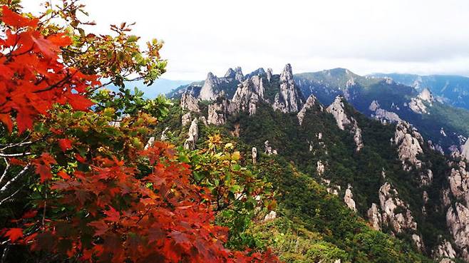 [포토] 가을옷 갈아입기 시작한 설악산..'등산하기 좋은 주말'