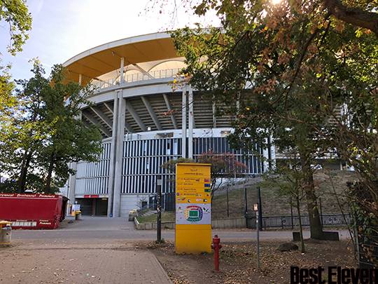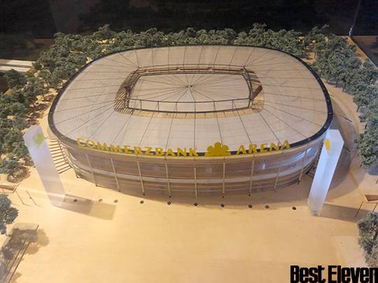 검붉은 팀의 개나리색 홈구장, '코메르츠방크 아레나'