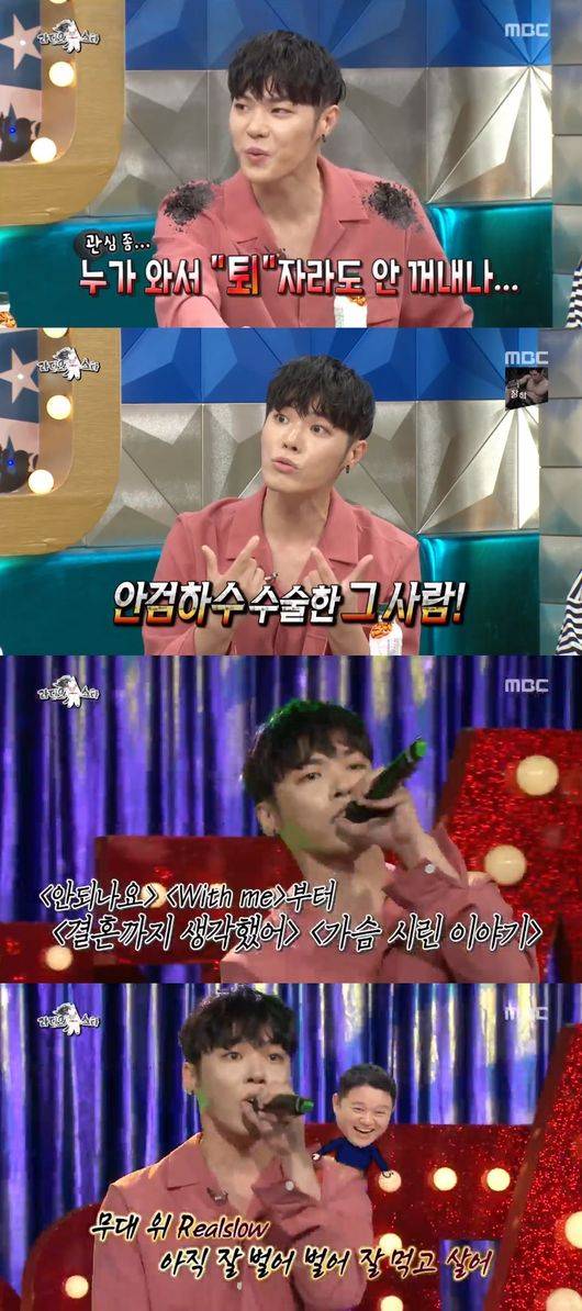 지난 3일 오후 방송된 MBC '라디오스타'(이하 라스)에서는 휘성이 출연했다. 6년여만에 '라스'에 출연한 휘성은 계속해서 과거 전성기 시절 추억과 함께 현재 자신을 비하하면서 웃음을 선물했다.