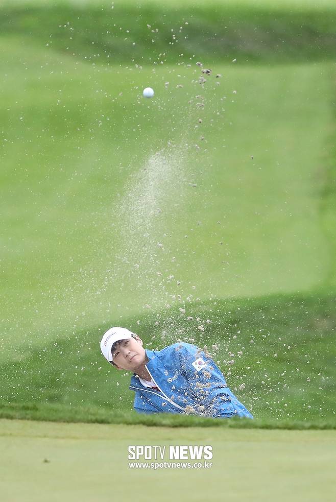 [스포티비뉴스=인천, 한희재 기자] 여자 골프 국가 대항전 UL 인터내셔널 크라운 2라운드가 5일 인천 송도 잭 니클라우스 골프 클럽에서 열렸다. 벙커샷을 한 박성현이 공을 바라보고 있다.