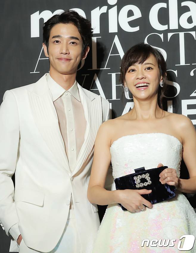 (서울=뉴스1) 권현진 기자 = 대반 배우 류이호, 진의함(오른쪽)이 5일 부산 해운대구 해운대 그랜드 호텔에서 열린 ‘마리끌레르 아시아 스타 어워즈’ 레드카펫 행사에 참석해 미소를 짓고 있다. 2018.10.5/뉴스1