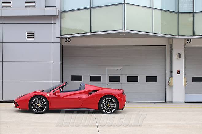 페라리의 미드십 스포츠카는 시간을 불문하고 항상 '최고'의 수식어를 달고 있다. 날렵한 몸매, 노면을 장악하는 성능, 채찍질을 부추기는 엔진음 등 운전자의 여러 감각을 깨우는 데 부족함이 없다. 488 역시 미드십 페라리의 계보를 잇는 주력 제품으로 많은 팬을 거느리고 있다. 비록 자연흡기 엔진에서 터보차저로 돌아서긴 했지만 여전히 아름답고 매력적이다. 페라리 488 스파이더를 강원도 인제 스피디움에서 만나봤다.