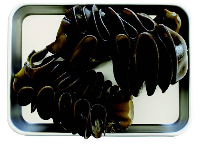 미역의 뿌리 윗부분의 씨앗주머니인 미역귀입니다. 미역의 포자가 방출되는 생식기관이죠.