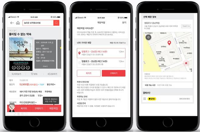 '매장픽업' 서비스는 위치기반 서비스를 통해 가장 가까운 매장과 보유 재고 수량을 실시간으로 확인 가능하다. 따라서 급히 필요한 도서와 매장에 보유하고 있는 양서 등을 쉽게 구매할 수 있다.