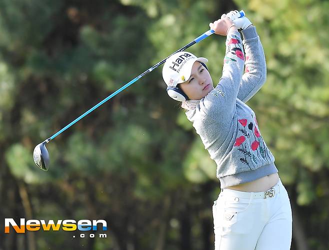 이날 박현경이 2번홀에서 티샷을 구사하고 있다.