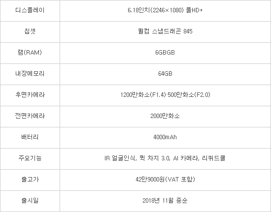 최대 장점은 '가성비(가격대비성능)'다. 아이폰XS(텐에스)·갤럭시노트9·LG V40 씽큐 등 프리미엄 스마트폰과 견줄 만한 사양·기능을 갖췄지만 가격이 저렴하다.