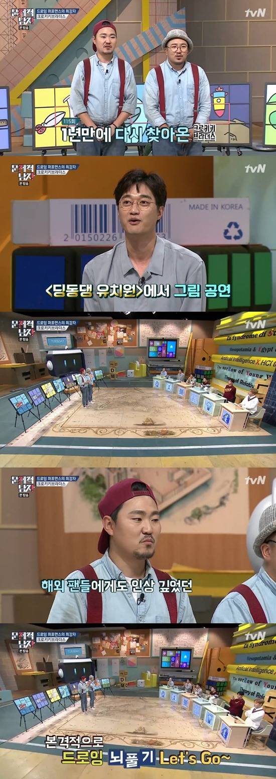 16일 방송된 tvN '뇌섹시대-문제적 남자'에는 크로키키 브라더스가 출연했다. 크로키키 브라더스는 1년 전 '문제적 남자'에 출연해 참신하고 기발한 문제들을 직접 출제해 눈길을 끌었다.