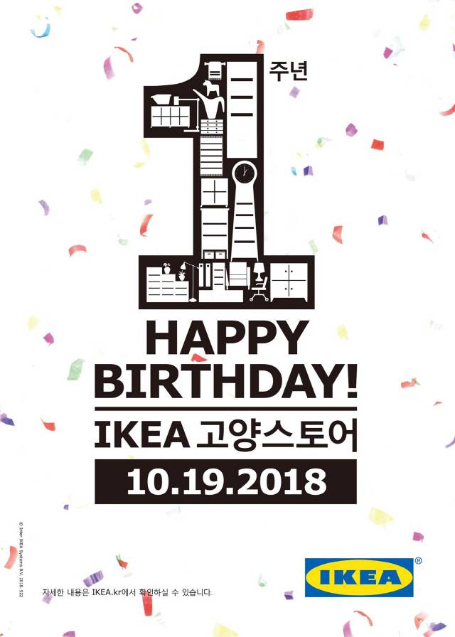 한편 이케아 고양점은 오픈 1주년을 기념해 매장 및 소셜미디어를 통해 다채로운 이벤트도 함께 진행한다. 10월 생일을 맞은 어린이들을 위한 생일 파티, 11만원 이상 구매 고객 대상 케이크 쿠폰 증정 이벤트, 스웨덴 문화를 체험할 수 있는 다양한 행사와 야외 뮤직 페스티벌 등이 진행될 예정이다.
