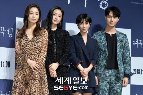 배우 이영희, 손나은, 박민지, 이태리(왼쪽부터)가 17일 오전 서울 강남구 신사동 압구정 CGV에서 열린 영화 '여곡성'의 제작보고회에 참석해 포즈를 취하고 있다.